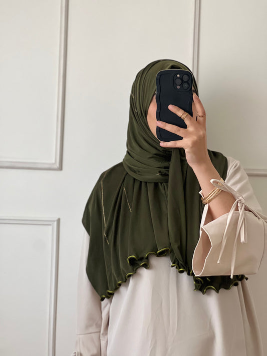 En venteHijab à strass vert kaki
