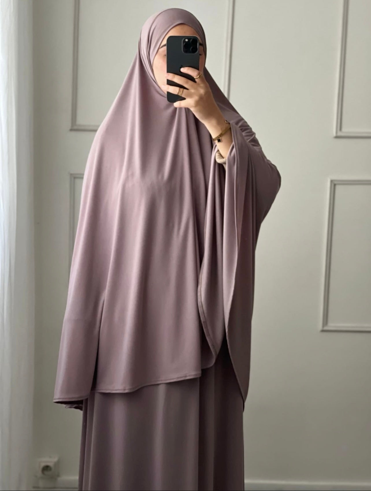 Cet ensemble prière en jersey est disponible dans une variété de couleurs permettant à chacune de trouver celui qui correspond le mieux à son style. Que ce soit pour la prière, des moments de méditation ou des occasions spéciales, cet ensemble allie confort, modestie et élégance .