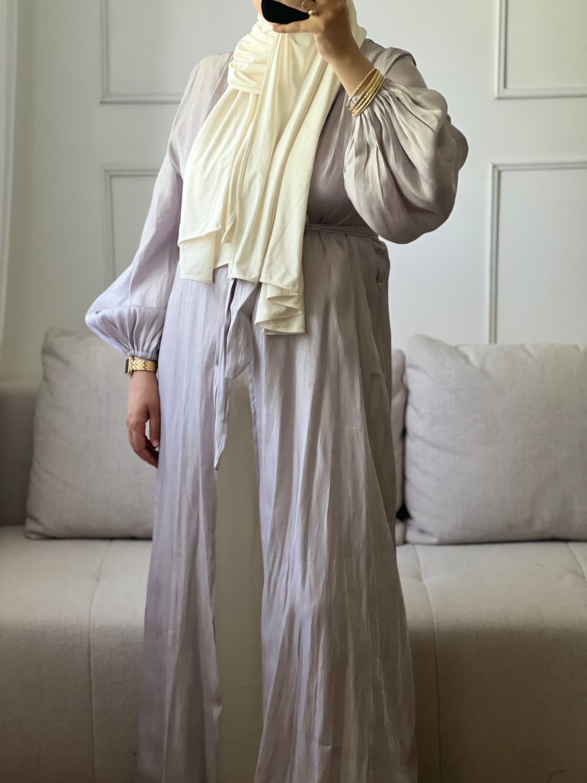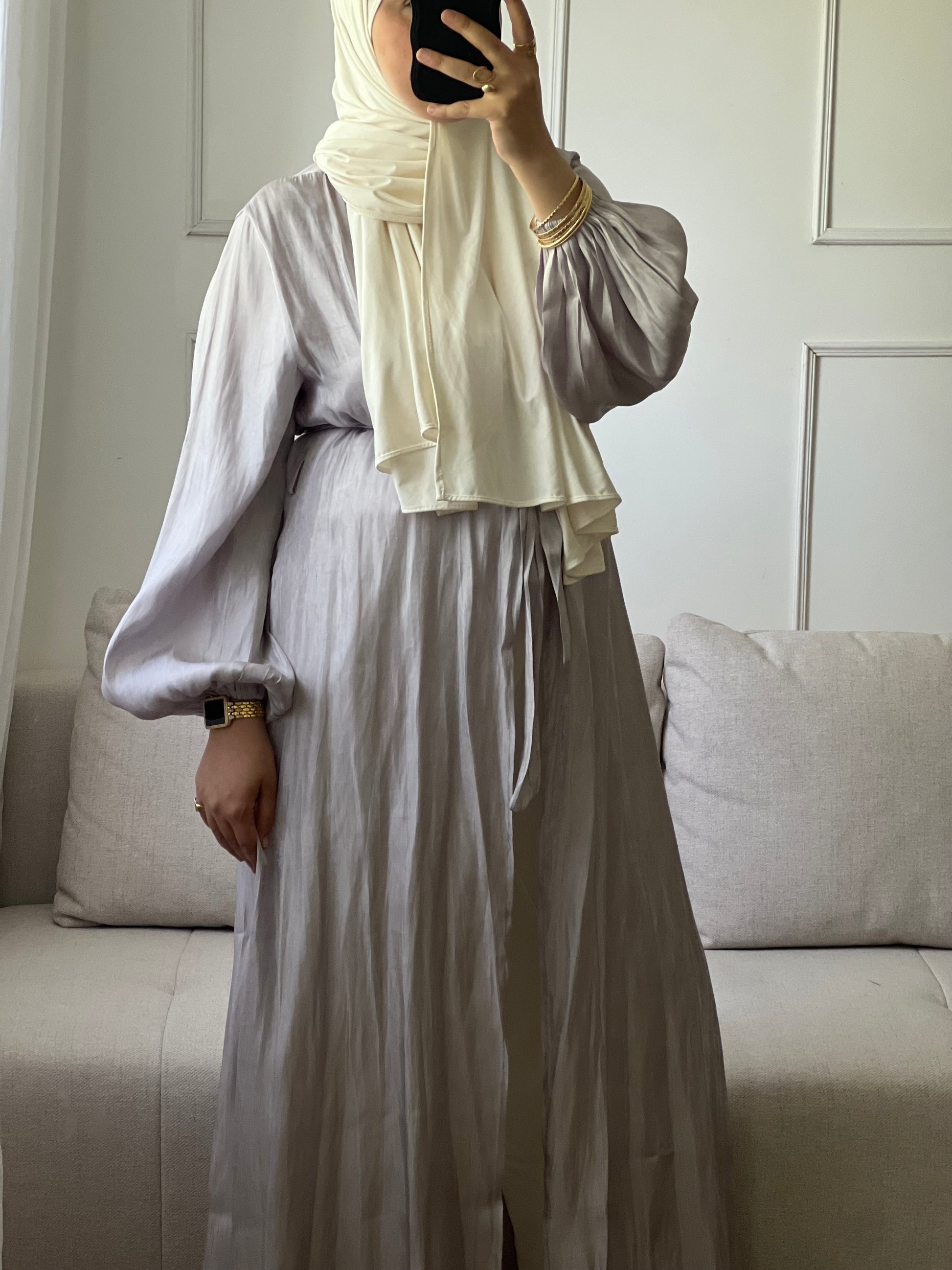 Voici ce kimono en organza qui allie style et respect des valeurs de modestie.