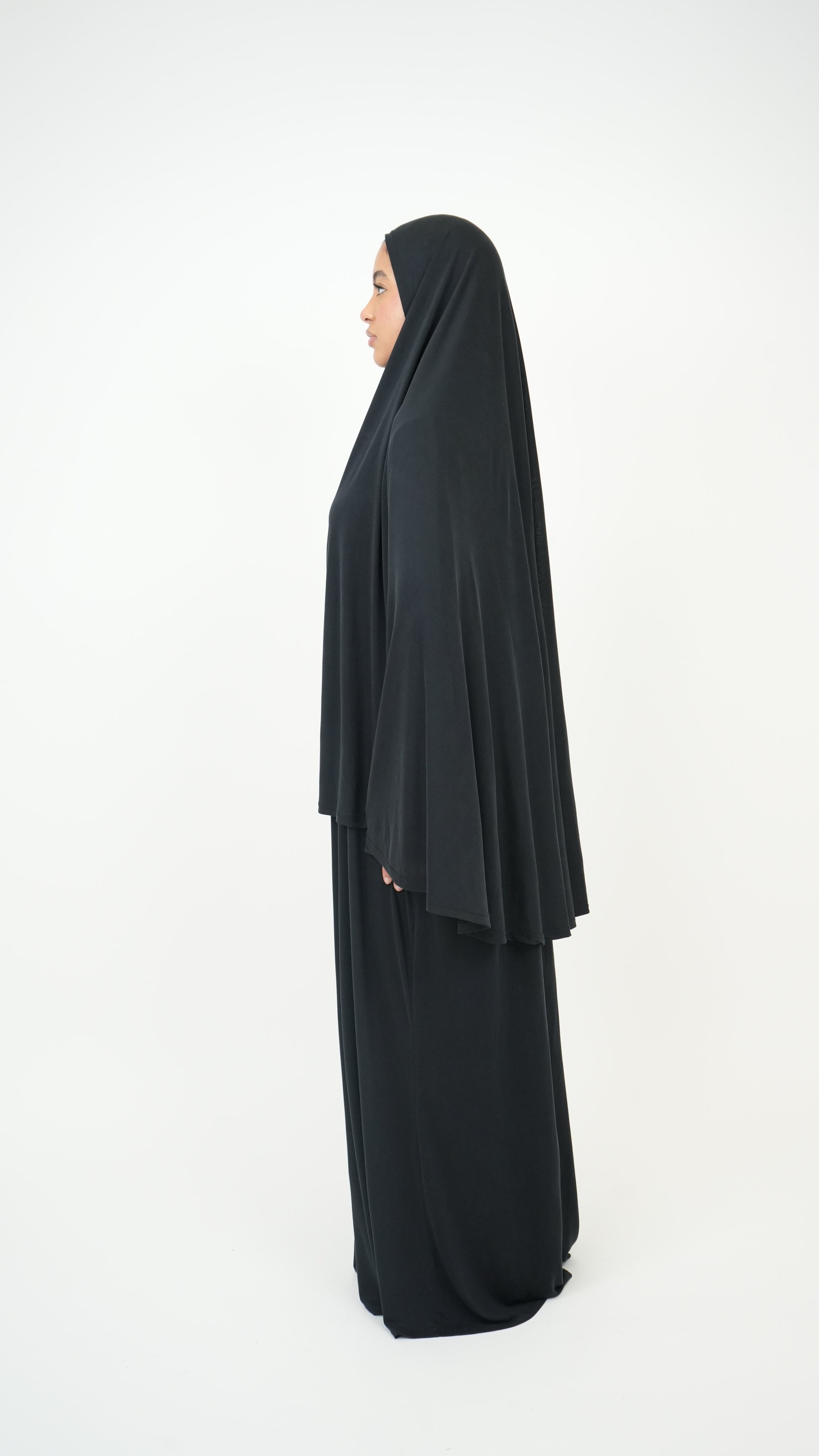 Découvrez cet ensemble composé d’une abaya et d’un khimar en jersey premium, un tissu léger, opaque et respirant, offrant un confort optimal au quotidien.